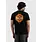 Warm orange tones flow through the artwork, bringing energy and a sense of unity to the design. A subtle logo sits on the chest, while the back commands attention with a bold emblem print layered with an outlined puff print logo for depth and impact. A tonal signature triangle marks the back neckline, finishing a piece defined by presence and a confident visual statement.