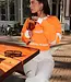 Deze cropped longsleeve is uitgevoerd in een frisse oranje kleur met witte details en heeft een kortere lengte die zorgt voor een moderne en vrouwelijke fit. De top is voorzien van een ronde hals en lange mouwen met contrasterende strepen, wat het item een sportieve touch geeft. Op de voorzijde zijn meerdere Unique the Label logo’s en een “Football Academy” print verwerkt, wat zorgt voor een herkenbare en edgy look. De zachte stof draagt comfortabel en maakt dit item perfect voor zowel casual als statement outfits. Lois is 1.72m en draagt maat XS.