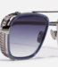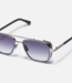 Masculine aviator frame with a double bridge and wide, grooved end pieces. Features protective titan..