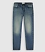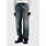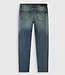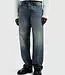 Finished in a blue green tone with a tinted stone wash, shaped by whiskers for a natural worn in character. Designed with a button fly, front and back pockets, triangle embroidery and a leather logo patch.